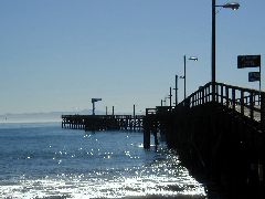 サンタバーバラにつきます。 ここは前面が海、背後には山地がせまっており、限られた土地の中で人が生活 をしています。なんか土地の条件だけでいえば日本の神戸を私はイメージ しました。 人口はおよそ8万人。海に囲まれたリゾートタウンとして知られています。 また、水産業、畜産業が発達しています。 ダウンタウンは南北方向に展開し、メインストリートも南北方向です。 またダウンタウンの南側の海辺には観光で有名なピアがあります。 友人がいるUCSBはダウンタウンからさらに西へ10マイル弱ほど離れた場所にあります。 この海域へは寒流が来ており、海水浴にはあまり向きません。